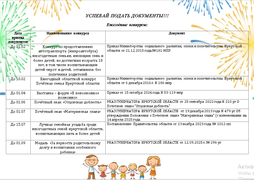 - Ежегодный областной конкурс Почётная семья Иркутской области
