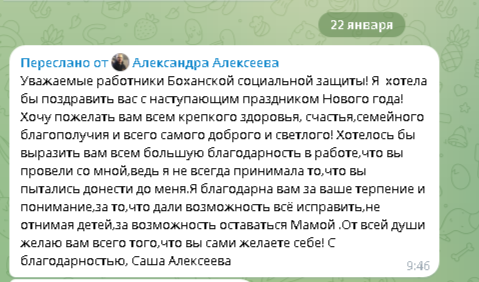 Отзыв Алексеевой А.В. о работе специалистов отдела помощи семье и детям Дети в семье