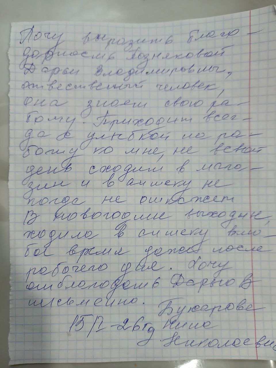 Отзыв Бухаровой Н.Н. о работе соцработника Позднякой Д.В