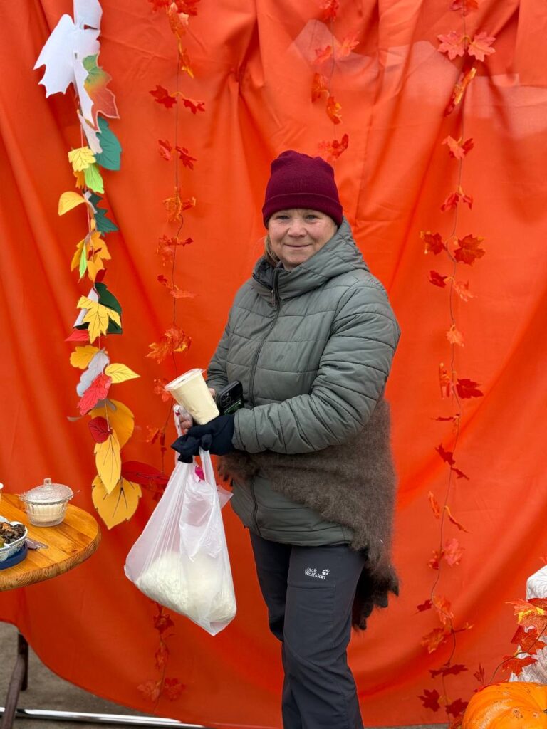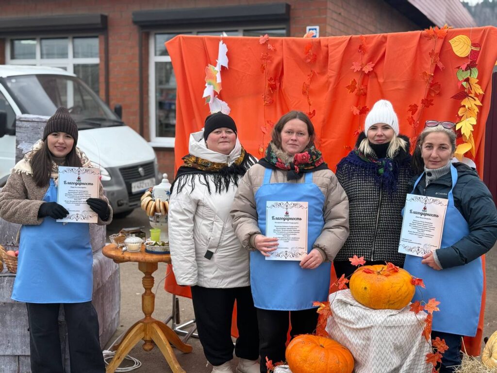 Отдельным украшением ярмарки стала фотозона, оформленная в осеннем стиле — с тыквами, охапками листьев, деревянными корзинками, садовой тачкой, самодельной печью и уютными деталями. Здесь каждый желающий мог сделать памятное фото, запечатлев атмосферу осеннего уюта и сельской простоты.