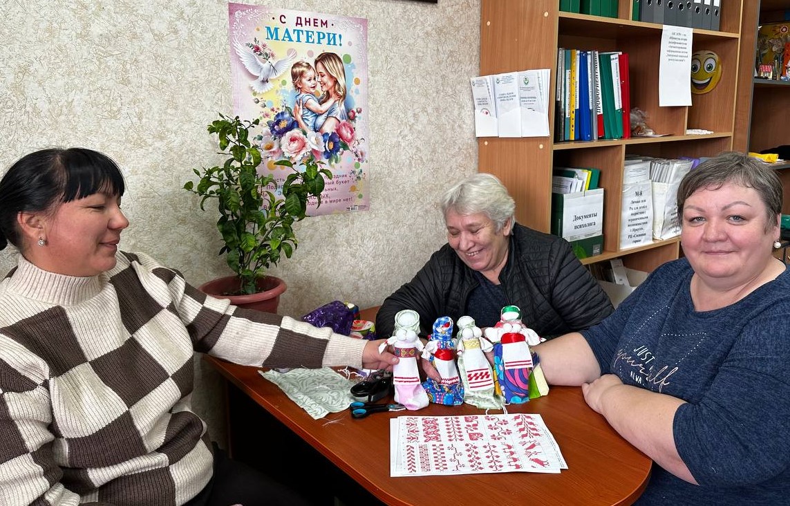 Участники погрузились в творческую атмосферу. Мамы осваивали древнее искусство создания кукол‑оберегов, а дети учились делать объёмные цветы из бумаги для праздничных открыток.
